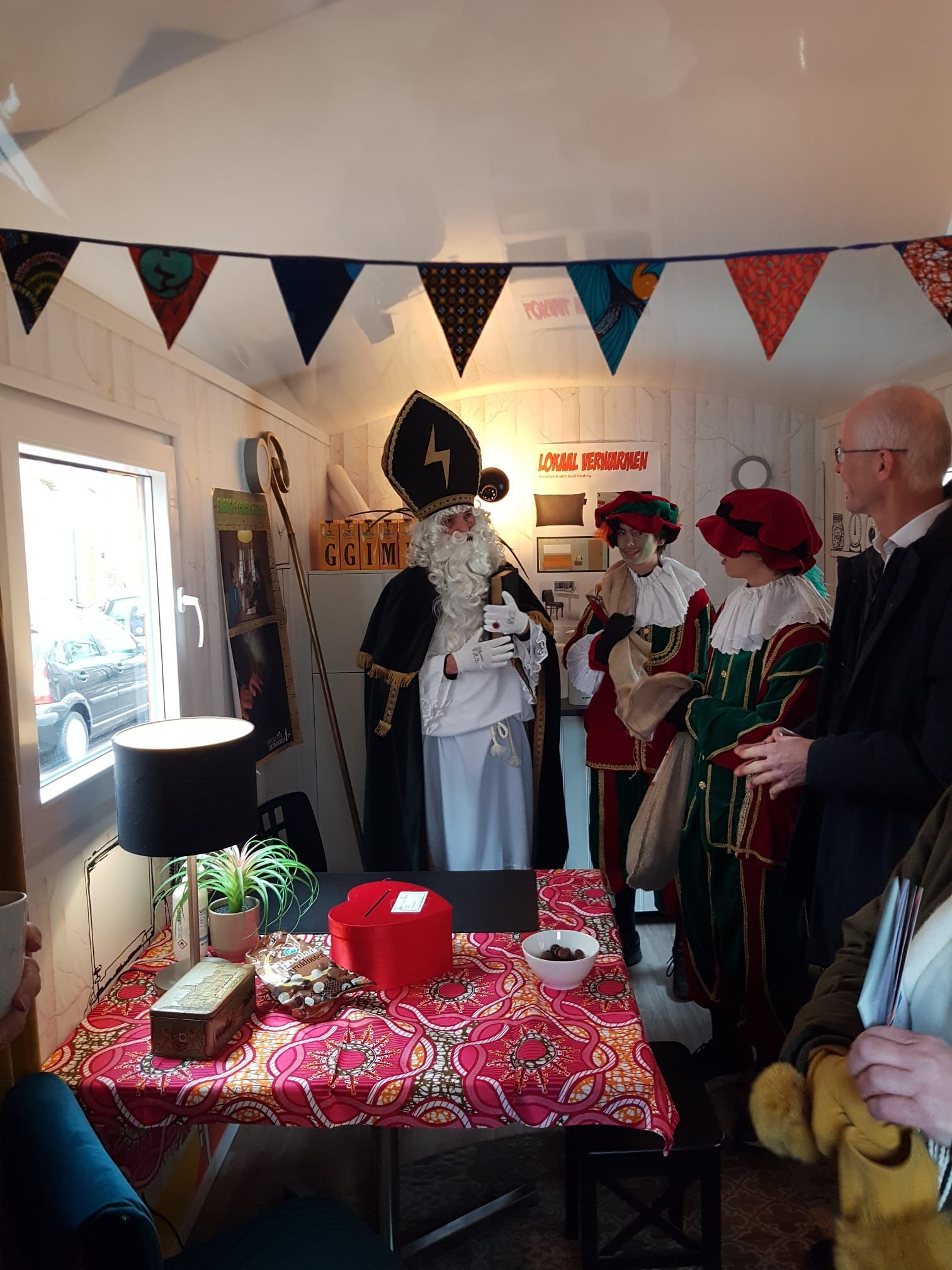 Het was een beregezellige en bomvolle week in de Warme Woonkamer Wagen in de Voltatstraat, De vele bezoekers kwamen voor inspiratie en tips hoe je de wintermaanden gezelliger, duurzamer én goedkoper doorkomt, de kinderen kwamen vooral voor de Groene Sint.